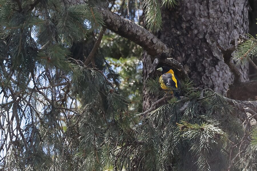 Grubodziób czarno-żółty, Black-and-yellow Grosbeak, Mycerobas icterioides, 04.2025, Pakistan (4)