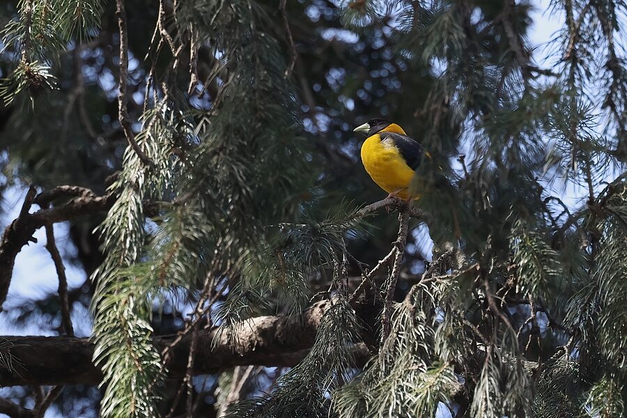 Grubodziób czarno-żółty, Black-and-yellow Grosbeak, Mycerobas icterioides, 04.2025, Pakistan (5)