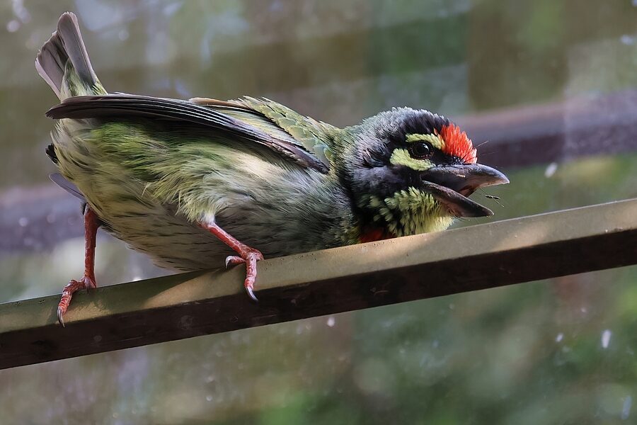 Pstrogłów żółtogardły, Coppersmith Barbet, Psilopogon haemacephalus, 04.2025, Pakistan (7)