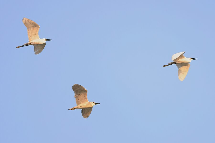 Ślepowron, Black-crowned Night Heron, Nycticorax nycticorax i Czapla nadobna, Little Egret, Egretta garzetta, 04.2025, Pakistan