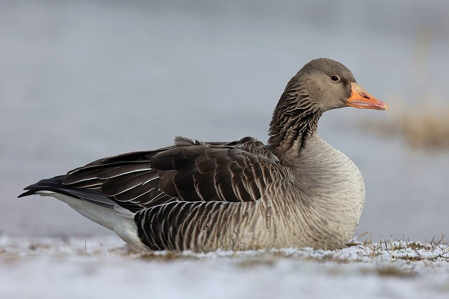 Gęgawa, Greylag Goose, Anser anser, Przeczyce, SLK, 10.02.2025 (Polska, Poland) (1)