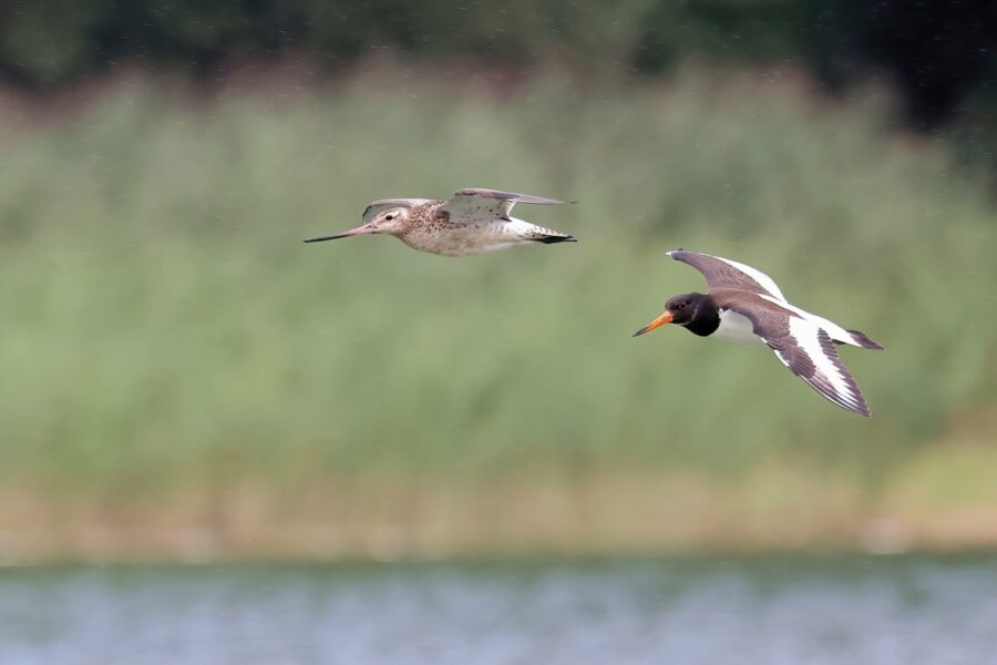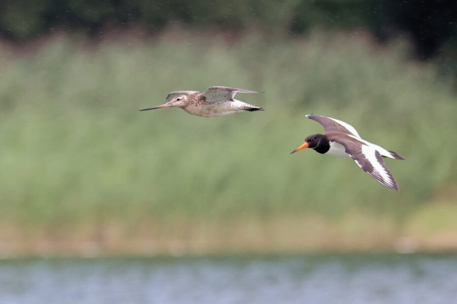 Ostrygojad, Oystercatcher, Haematopus ostralegus i szlamnik, Bar-tailed Godwit, Limosa lapponica, Przeczyce, SLK, 03.08.2025 (Polska, Poland) (1)