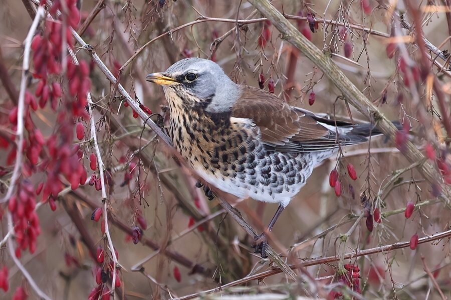 Dzięcioł białoszyi, Syrian Woodpecker, Dendrocopos syriacus, Sosnowiec, SLK, 18.01.2026 (Polska, Poland) (3)